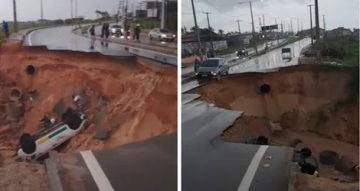 De acordo com informações preliminares, o desabamento ocorreu em meio a fortes chuvas na região, o que pode ter contribuído para o comprometimento da estrutura da via. Com o impacto, veículos que trafegavam pelo local acabaram sendo surpreendidos pelo buraco.
